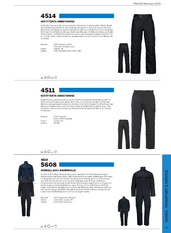 Material: 100% Baumwolle, 320 g/m 2 HOSEN - TRANSPORT & SERVICE